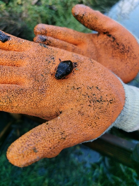 Then came the lows...The bug hotel on the reserve, built by local young farmers, had been vandalised, uprooted and thrown in the pond along with one of the kissing gates. On pulling the bug hotel out of the pond we noticed a bid of movement in the structure, a newt! Not just one, we ended up recovering 15 newts and ensured all returned safely to the pond. We also returned two very fat and ready to spawn frogs and a great diving beetle. It just shows the importance of leaving removed pond material at the side of the pond for a day to give the species a chance to make their way back into the water.