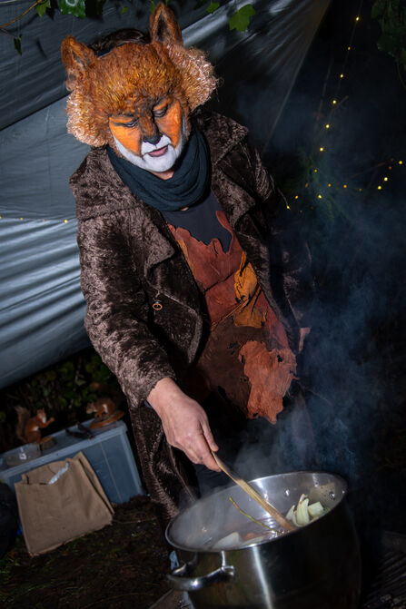 On arrival, visitors were welcomed by the joyful voices of St Agnes Choral Society Choir before setting off along firelit paths through the nature reserve. Along the way, they encountered a cast of unforgettable characters from a stressed and hungry shrew to warring mythological kings, a commanding goddess intent on stealing the light, and a fox and badger sharing roast chestnuts and captivating tales.
