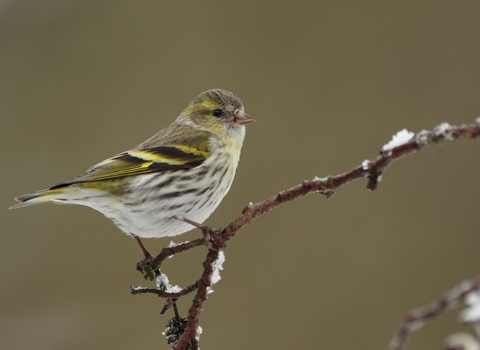 The siskin is a relatively common, small finch of conifer woodlands and some mixed woods. In the winter, they gather in groups with lesser redpolls and feed on seeds in birch and alder woodland, as well as at birdtables. Many of our breeding siskins are residents, but they are joined by birds from Europe in winter. The female siskin builds her neat nest high-up in a conifer tree, using twigs, lichen and feathers. She incubates the eggs alone (usually two to six in a clutch) but both parents feed the chicks.